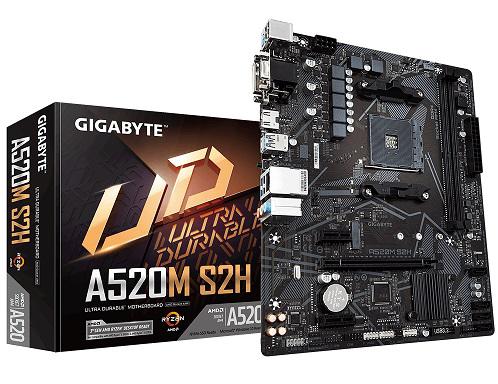 Материнская плата GIGABYTE GA-A520M-S2H, Socket AM4, AMD A520, Dual 2xDDR4-5100, APU AMD graphics, VGA, DVI, HDMI, 1xPCIe X16, 4xSATA3, RAID, 1xM.2, 2xPCIe X1, ALC887 HDA, GbE LAN, 6xUSB3.2, RGB Fusion 2.0, mATX