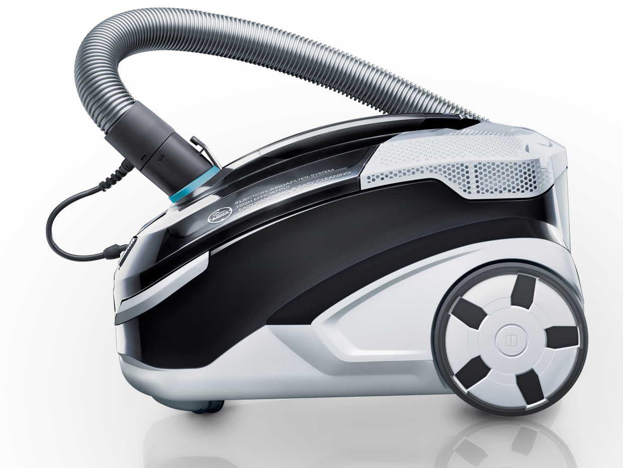 Моющий пылесос Thomas Vestfalia XT с уникальным аквафильтром THOMAS AQUA-BOX. Пылесос нового поколения THOMAS XT - компактнее, легче и удобнее в использовании. Принципиально новая система аквафильтра Thomas AQUA-BOX: высокая эфективность, легкая отчистка Новый стильный и компактный дизайн корпуса Двухцветный корпус: дымчатый/антрацит Прорезининные влагозащищенные кнопки электронного управления на корпусе Передние колеса адаптированные для преодоления препятствий Задние колеса большого диаметра с резиновыми ободами Два парковочных положения корпуса EPA-фильтр, моющийся Мощность двигателя макс 1700 Ватт Специальный нагнетательный насос Наружный съёмный резервуар объёмом 1,7 л для моющего раствора 3-х ступенчатое регулируемое электронное управление мощностью Tелескопическая труба из нержавеющей стали Автоматическая смотка кабеля Длина сетевого кабеля - 8 метров Свободное вращение шланга на 360 градусов Держатели на корпусе для двух насадок Стандартные принадлежности в удобной сумке для хранения : Большая новая TURBO щетка Переключаемая насадка со щеткой для сухой чистки твердых поверхностей и ковров Насадка для очистки мягкой мебели Щелевая насадка увеличенной длины (360 мм) Распыляющая насадка для влажной уборки с встроенным переключаемым адаптером для ковровых и твердых поверхностей Распыляющая насадка для мягкой мебели Концентрат THOMAS ProTex для чистки ковров *Характеристики* Тип обычный Уборка сухая / влажная Потребляемая мощность 1700 Вт Пылесборник аквафильтр Регулятор мощности на корпусе Фильтр тонкой очистки есть Источник питания сеть *Особенности* Длина сетевого шнура 8 м Функции и возможности автосматывание сетевого шнура, место для хранения насадок Размеры пылесоса (ШxГxВ) 31.8x48.6x30.6 cм Вес 8 кг Дополнительная информация сумка для принадлежностей; радиус действия 12м; съёмный резервуар объёмом 1,7 л для моющего раствора *Трубки и насадки* Труба всасывания телескопическая Турбощетка в комплекте есть Дополнительные насадки в комплекте пол/ковер; для мягкой мебели; щелевая; распыляющая для влажной уборки с адаптером для ковровых и твердых поверхностей; распыляющая насадка для мягкой мебели