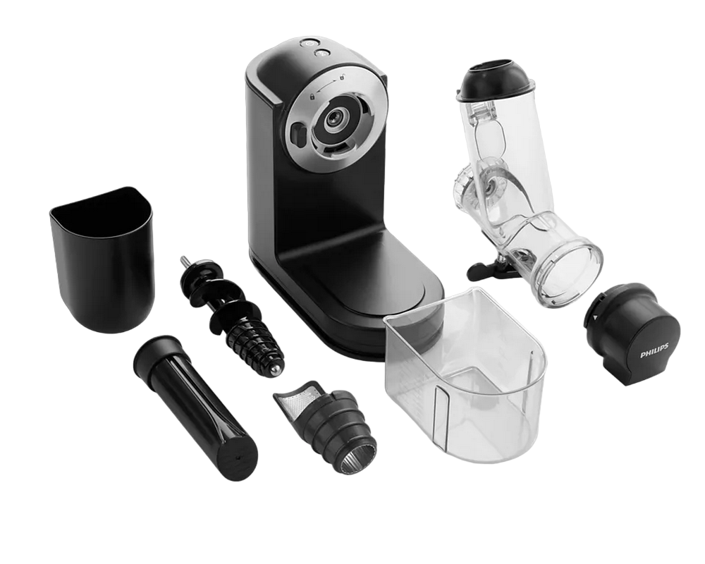 , 1000W power output, juice collection container 1L, pulp container 2.1L, 2 speeds, feeding tube (80 mm), black