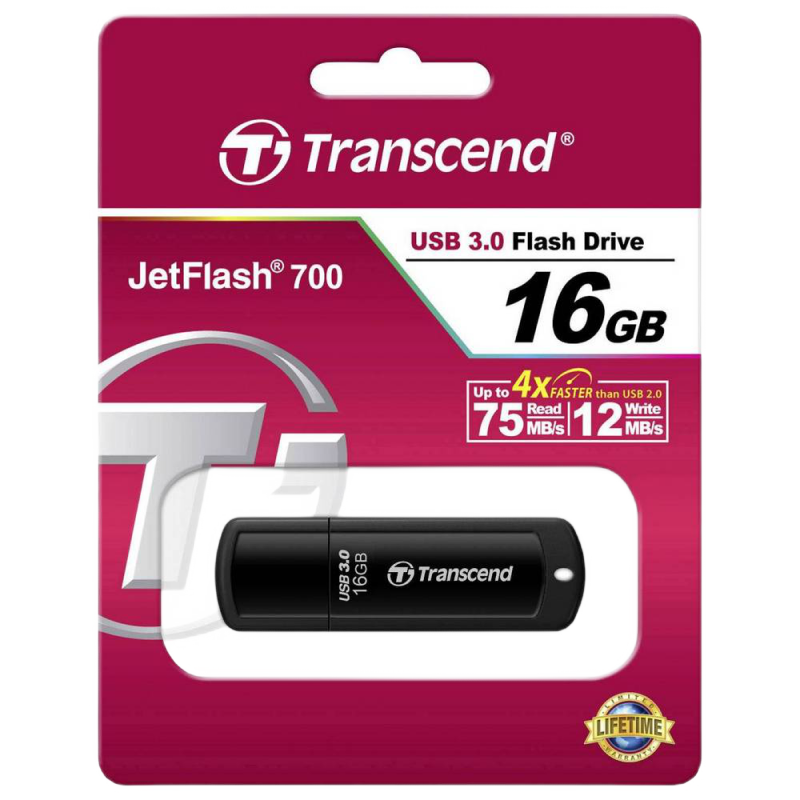 16GB USB3.1 Flash Drive Transcend "JetFlash 700", Black, Classic Cap (R/W:90/20MB/s)