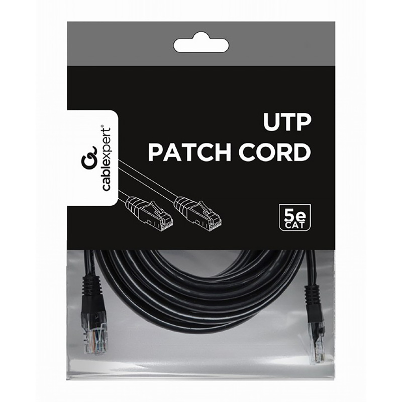 5m, Patch Cord Black, PP12-5M/BK, Cat.5E, Cablexpert, molded strain relief 50u" plugs