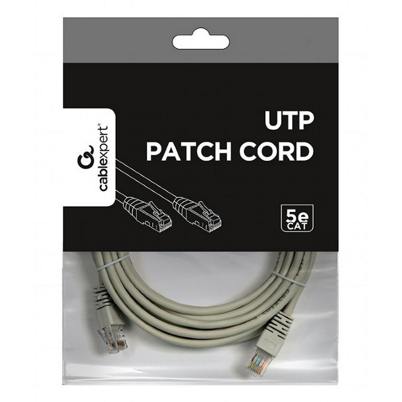 5m, Patch Cord Gray, PP12-5M, Cat.5E, Cablexpert, molded strain relief 50u" plugs