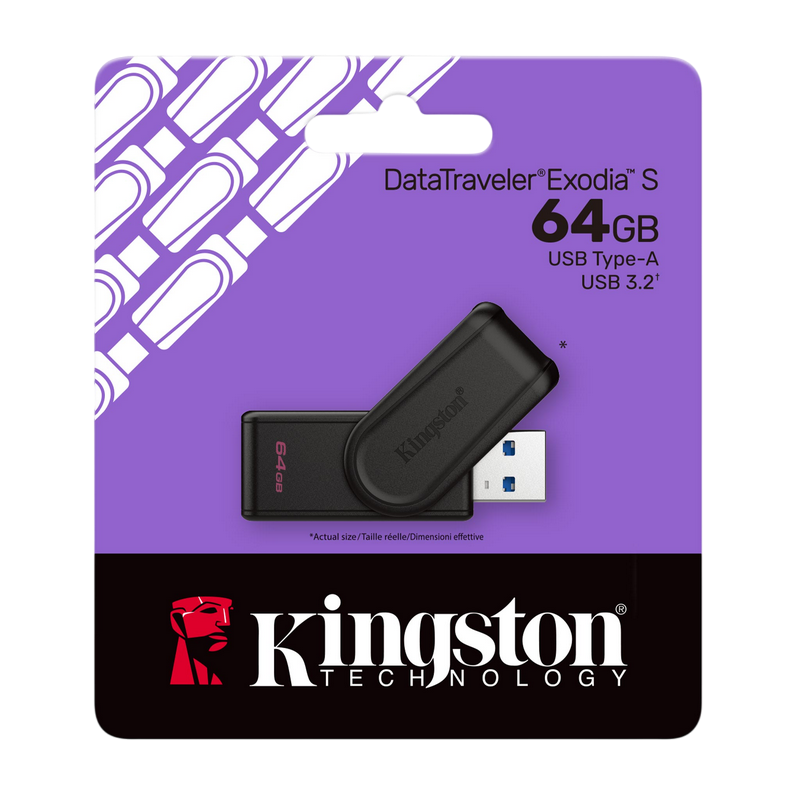 64GB USB3.2 Flash Drive Kingston DataTraveler Exodia S (DTXS/64GB), Black-Black, Plastic, Slider Cap
