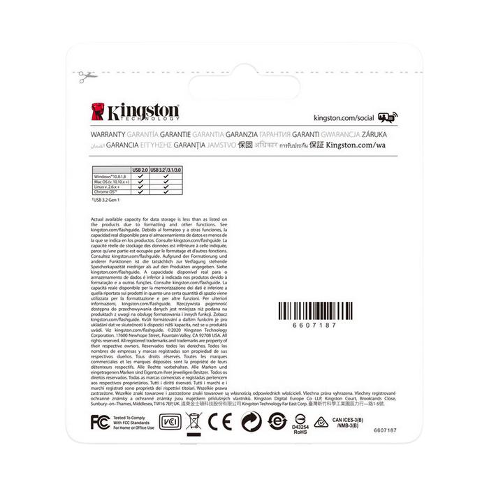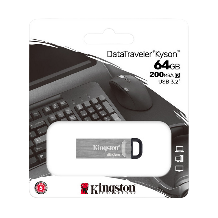 64GB USB3.2 Flash Drive Kingston DataTraveler Kyson, Silver, Metal Case, Key Ring (DTKN/64GB)