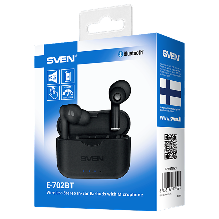 True Wireless Earphones SVEN E-702BT, Black