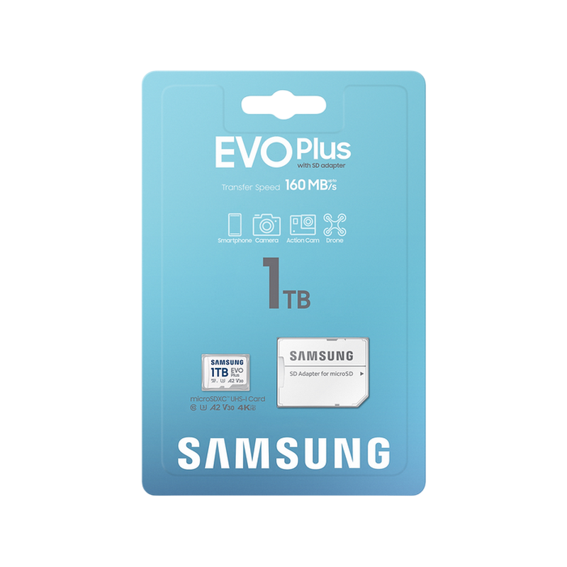 1.0TB MicroSD (Class 10) UHS-I (U3) +SD adapter, Samsung EVO Plus 2024 "MB-MC1T0SA" (R:160MB/s)