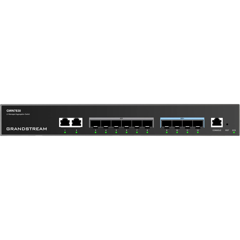 12-ports Layer 3 Aggregation Switch Grandstream "GWN7830", 2xGbit, 6xSFP, 4x10Gbit SFP+, Console Port, Rack-Mount