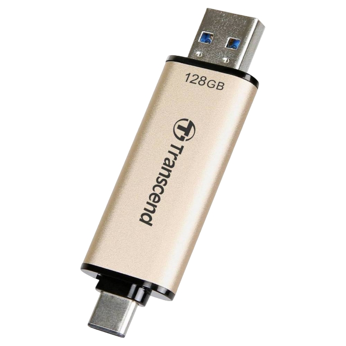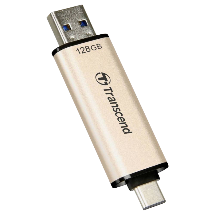 128GB USB3.1/Type-C Flash Drive Transcend "JetFlash 930C", Gold, Classic Cap, OTG (R/W:420/400MB/s)