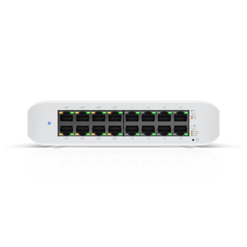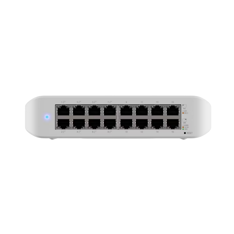 16-port Gigabit Layer 2 Managed Ubiquiti PoE+ Switch, USW-Lite-16-POE, 8xPoE Ports, 45W budget