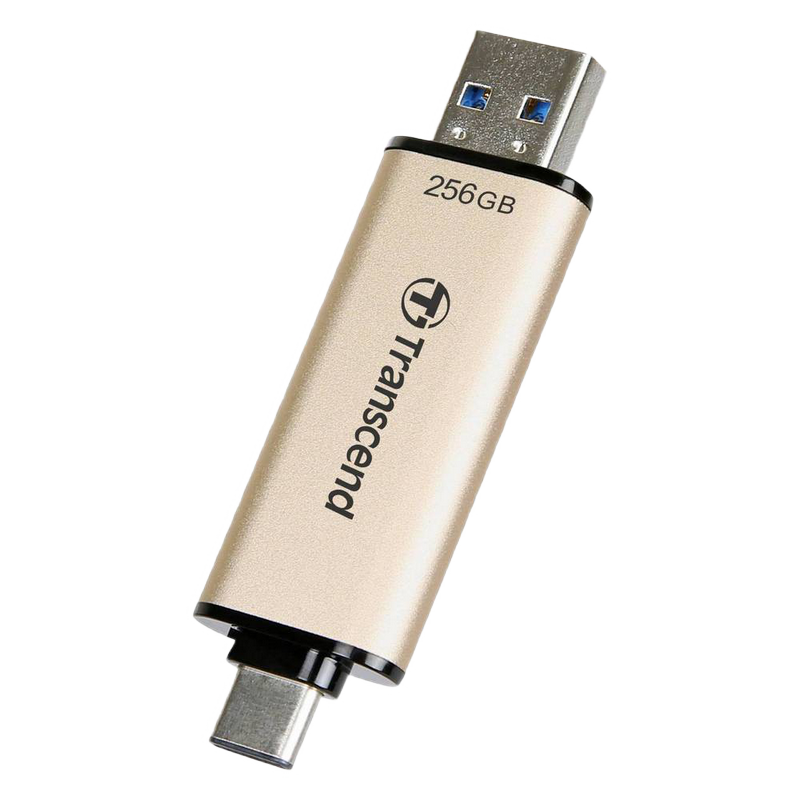 256GB USB3.1/Type-C Flash Drive Transcend "JetFlash 930C", Gold, Classic Cap, OTG (R/W:420/400MB/s)