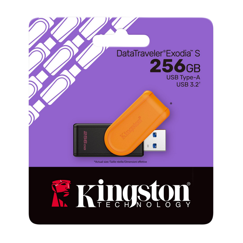 256GB USB3.2 Flash Drive Kingston DataTraveler Exodia S (DTXS/256GB), Black + Orange, Plastic, Slider Cap