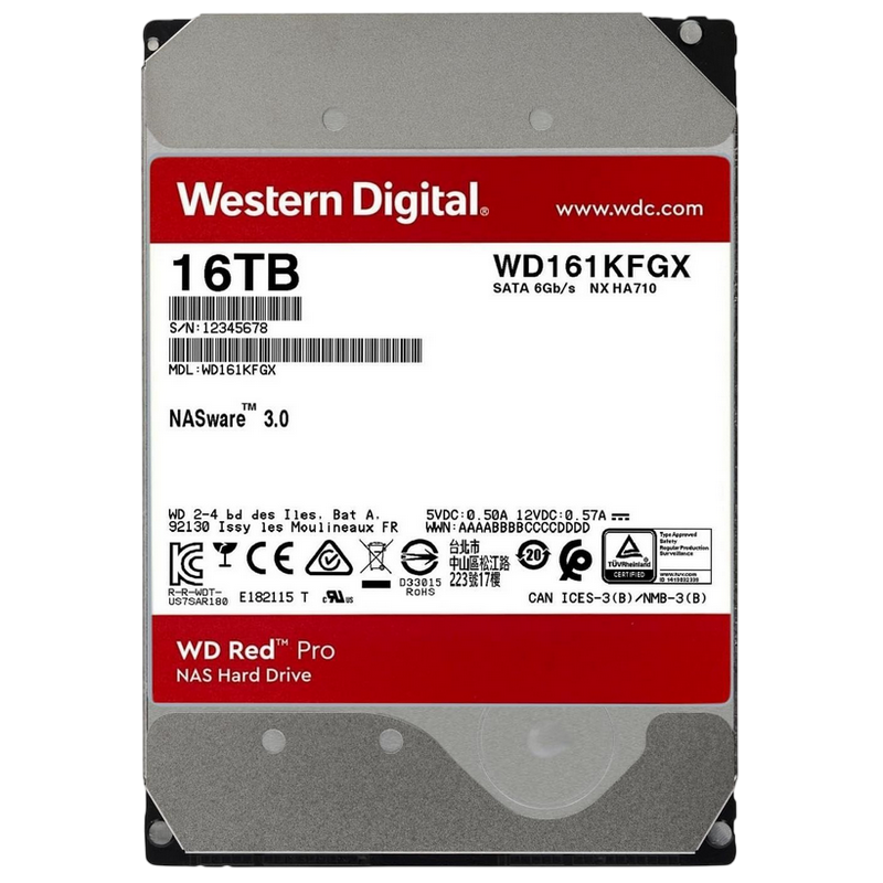 3.5" HDD 16.0TB-SATA-512MB Western Digital "Red Pro (WD161KFGX)", NAS, 24/7, CMR, 7200rpm, 2.5M (MTBF)