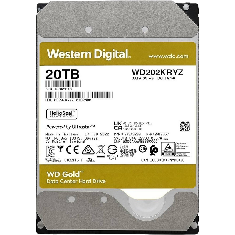 3.5" HDD 20.0TB-SATA-512MB Western Digital "Gold (WD202KRYZ)", Enterprise, CMR, 7200rpm, 2.5M (MTBF)
