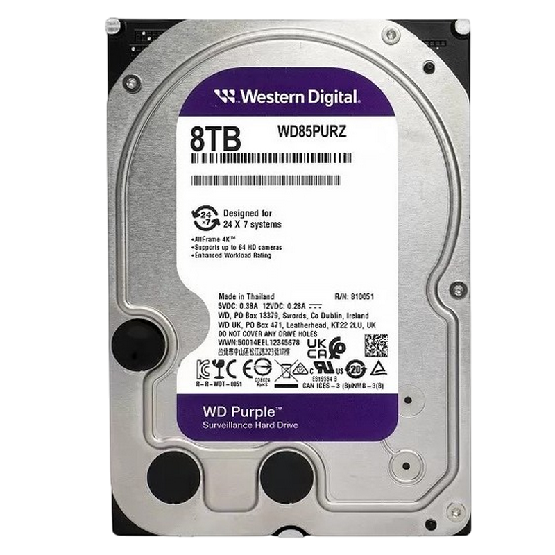 3.5" HDD 8.0TB-SATA-256MB Western Digital "Purple (WD85PURZ)", Surveillance, CMR