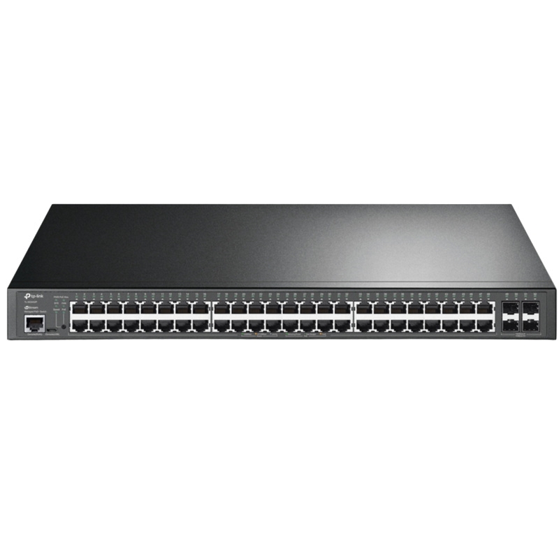// 1× RJ45 Console Port 1× Micro-USB Console Port 384 W PoE Budget: 48× 802.3at/af-compliant PoE+ ports with a total power supply of 384 W*. Full Gigabit Ports: 48× gigabit RJ45 ports and 4× gigabit SFP Slots provide high-speed connections. Integrated into Omada SDN: Zero-Touch Provisioning (ZTP)**, Centralized Cloud Management, and Intelligent Monitoring. Centralized Management: Cloud access and Omada app for ultra convenience and easy management. Static Routing: Helps route internal traffic for more efficient use of network resources. Robust Security Strategies: IP-MAC-Port Binding, ACL, Port Security, DoS Defend, Storm control, DHCP Snooping, 802.1X, Radius Authentication, and more. Optimize Voice and Video Applications: L2/L3/L4 QoS and IGMP snooping. Standalone Management: Web, CLI (Console Port, Telnet, SSH), SNMP, RMON, and Dual Image bring powerful management capabilities.