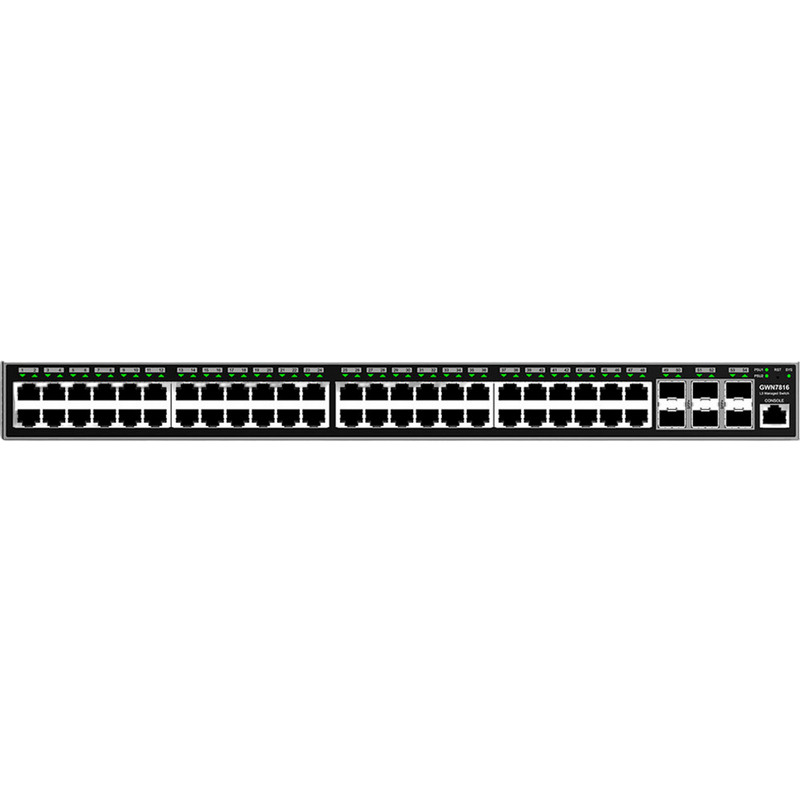 48-Port Gigabit Layer 3 Managed PoE++ Switch Grandstream "GWN7816P", 48xPoE+ ports, 6xSFP+, Stackable, 740W Budget, Console Port