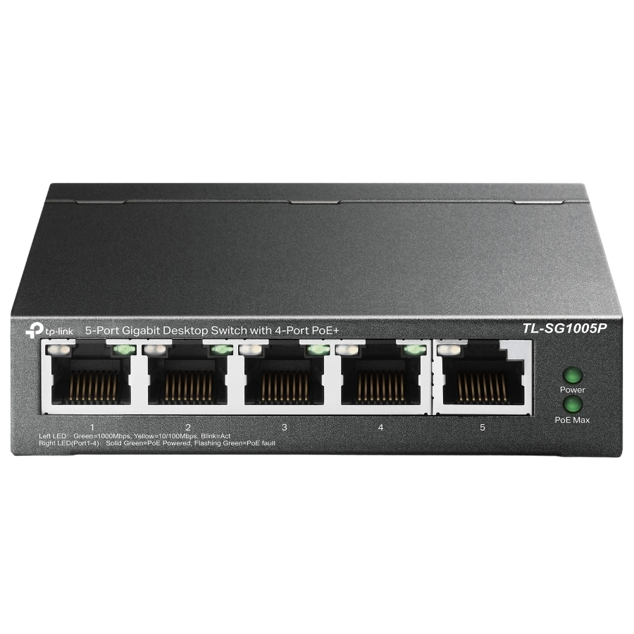 5 10/100/1000Mbps RJ45 ports With four PoE ports, transfers data and power on one single cable Working with IEEE 802.3af compliant PDs, expands home and office network 802.1p/DSCP QoS enable smooth latency-sensitive traffic Requires no configuration and installation