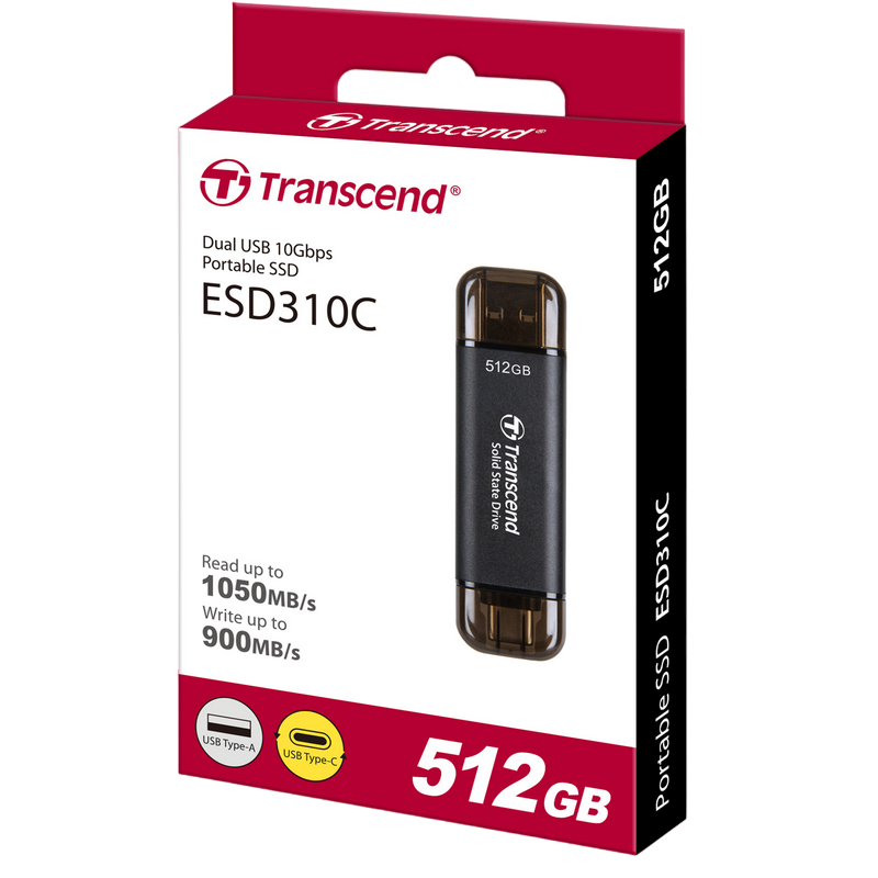 .512GB Transcend Portable SSD ESD310C Black, USB-A/C 3.2 (71.3x20x7.8 mm, 11g, R/W:1050/950 MB/s)