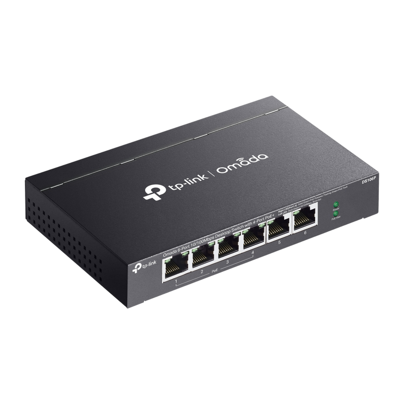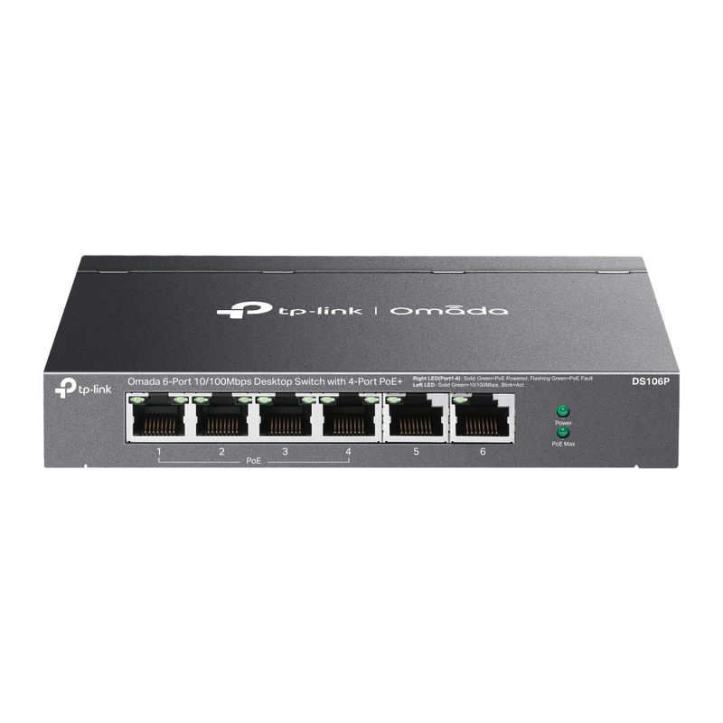 .6-port 10/100M TP-LINK PoE+ Switch, DS106P, with 4 Port PoE, 67W Budget, Autorecovery, steel case