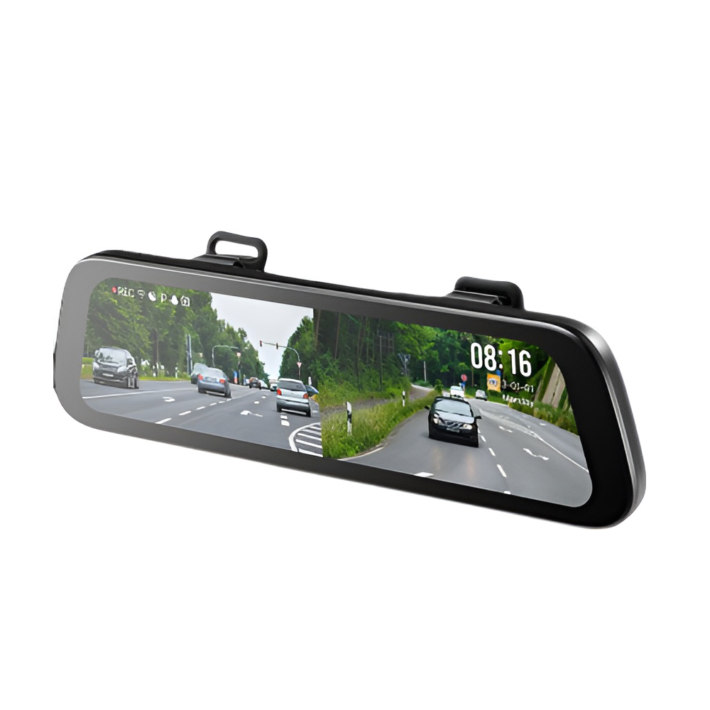 Ecran tactil HD de 9.35 inch. Ecranul integrat in oglinda permite vizualizarea inregistrarilor in timp real sau redarea fisierelor video.