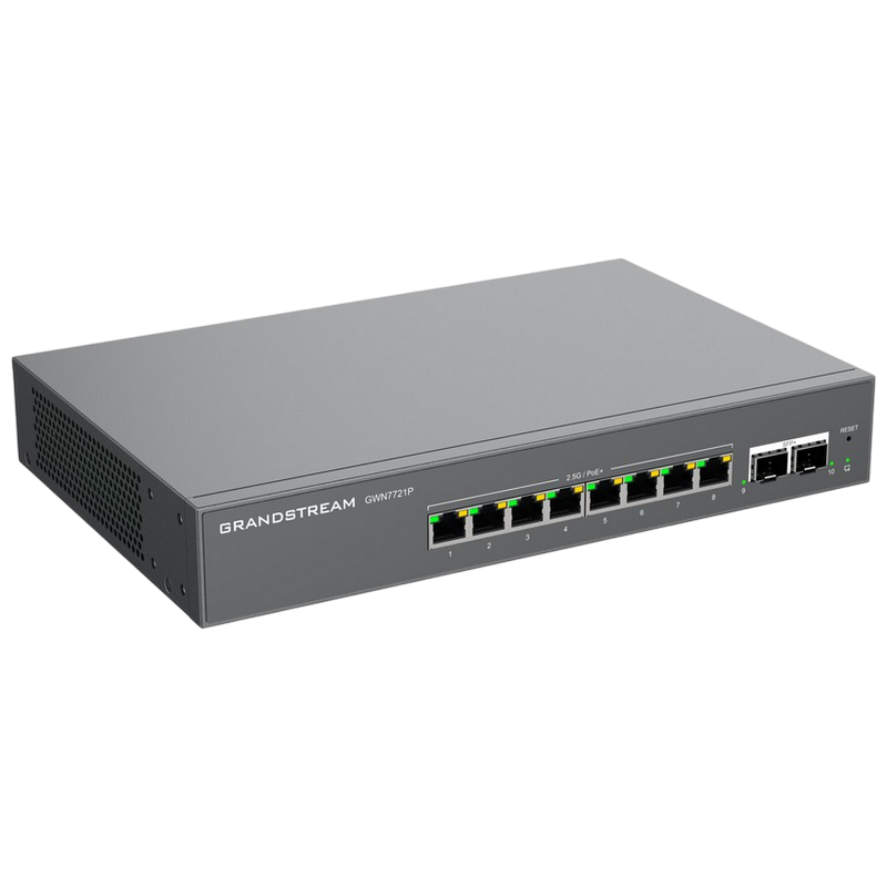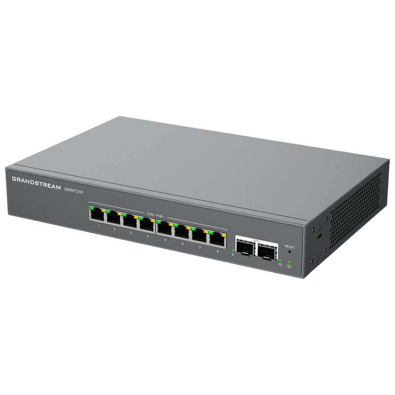 .8-port 10/100/1000/2500Mbps Lite Managed Switch Grandstream "GWN7721P", 8 Ports PoE+, 2xSFP+, Budget 130W