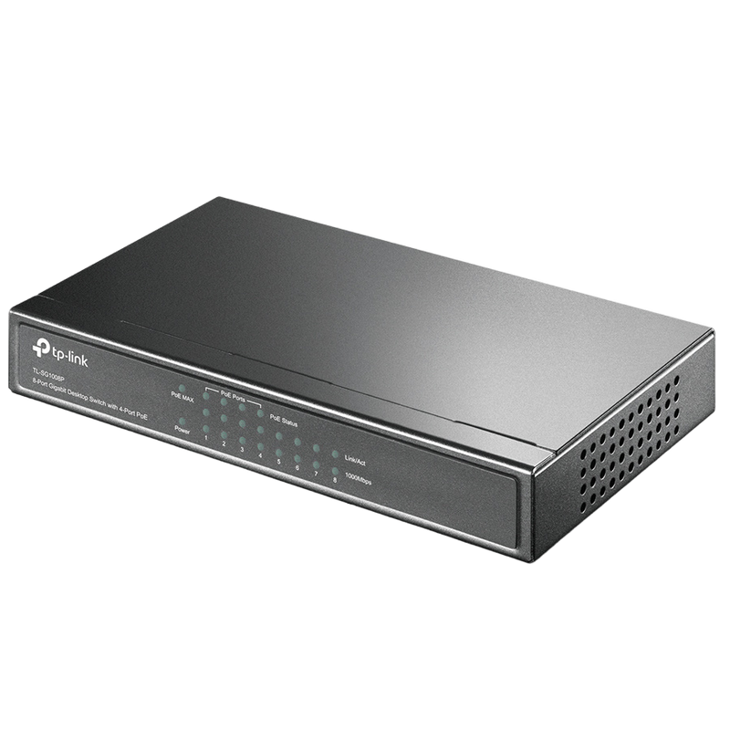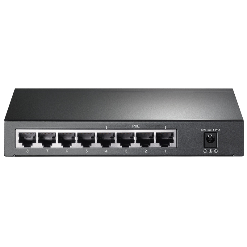 Supports PoE power up to 15.4W for each PoE port Supports PoE power up to 53W for all PoE ports Supports PoE IEEE 802.3af compliant PDs Supports IEEE 802.3x flow control for Full-duplex Mode and backpressure for Half-duplex Mode 8K entry MAC address table of the TL-SG1008P with auto-learning and auto-aging LED indicators for monitoring power, link, activity and speed External power adapter supply