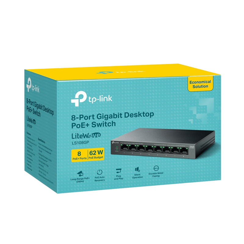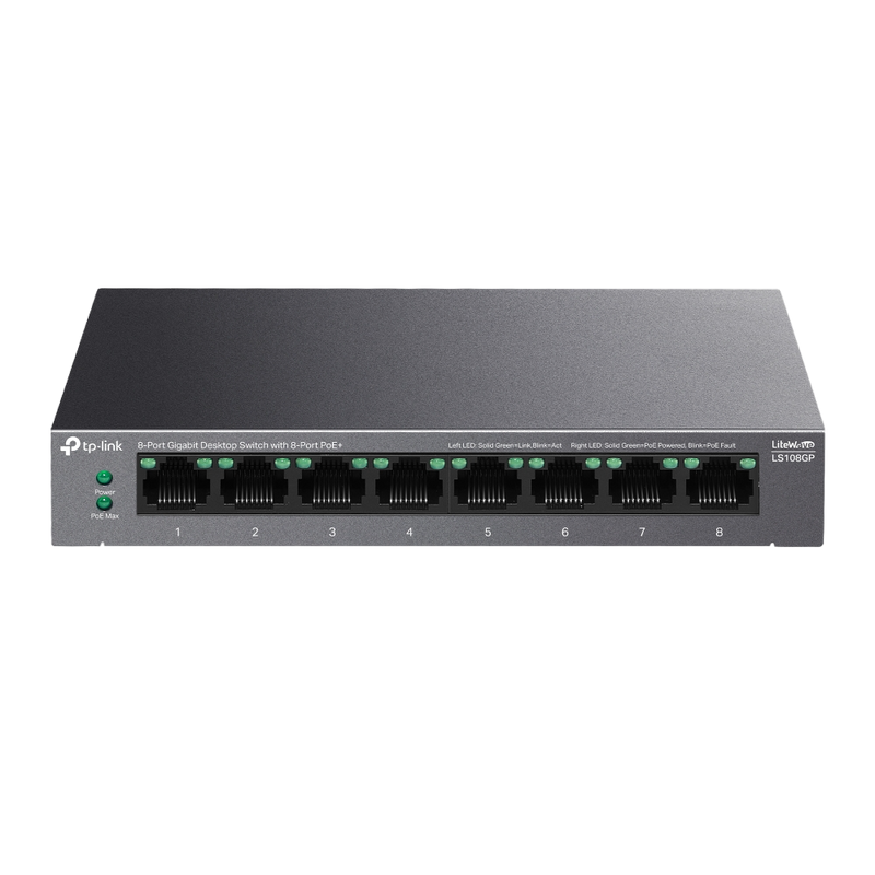 Rețea Ethernet: 8x 10/100/1000 Mbps PoE: 802.3af/at PoE+ Consumul de Energie : 62 W Interval: Până la 250 m Temperatura de funcționare: 0 °C - 40 °C LED Indicator: Da