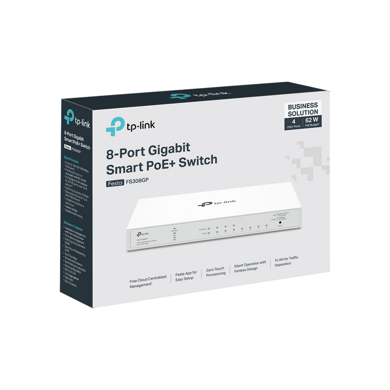 .8-port Gigabit Smart PoE+ Switch, TP-LINK "Festa FS308GP", with 4-Port PoE+, 62W Budget,Metal