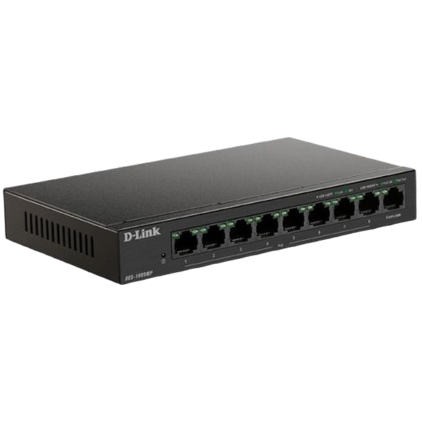 .9-port 10/100Mbps POE, D-Link DES-1009MP/A1A, with 8 PoE Ports, 1xGigabit Uplink, 117W Budget