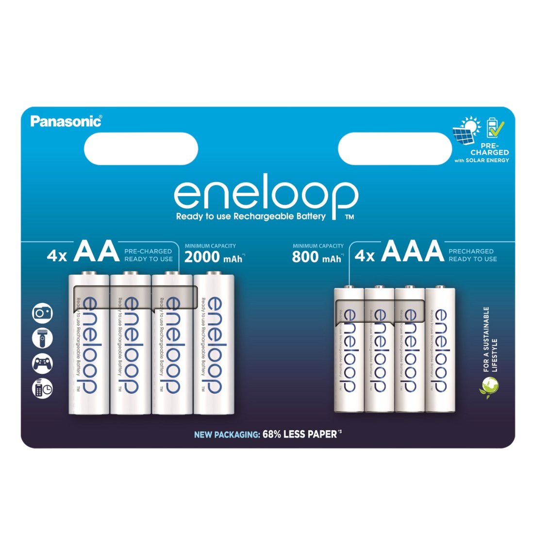 AA Eneloop 2000mAh + AAA 800 mAh, Blister*8, Panasonic, BK-3MCDE+4MCDE/8CP