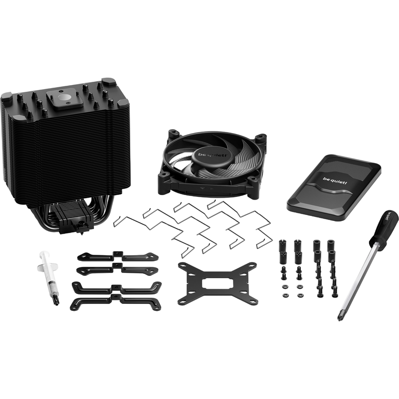 . PN: BK035 Socket compatibility Intel 1700 / 1200 / 1150 / 1151 / 1155 Socket compatibility AMD AM5 / AM4 Model Dark Rock 5 TDP (W) 210 Color option Black Overall dimensions without mounting material (L x W x H), (mm) 101 x 136 x 161 Total weight (kg) 1.03 Socket compatibility Intel 1700 / 1200 / 1150 / 1151 / 1155 Socket compatibility AMD AM5 / AM4 Overall noise level (dB(A)) @ 50/75/100% (rpm) 11.9 / 23.2 / 29.8 Number of fans 1 Dimensions (L x W x H), (mm) 76 x 136 x 161 Fin material Aluminum Surface treatment Ceramic coating Base material Copper CPU contact surface CNC machined Heatpipe number / Diameter (mm) 6 / 6 Fan model Silent Wings 4 120mm PWM Fan dimensions (mm) 120 x 120 x 25 Speed @ 100% PWM (rpm) 2100 Airflow at 100% PWM / 12V (CFM / m3/h) 55.0 / 93.5 Air Pressure at 100% PWM / 12V (mm H2O) 2.73 Bearing technology Fluid Dynamic Bearing Motor technology 6-pole fan motor Rated Voltage (V) 12 Input current (A) 0.10 Safety current (A) 0.20 Input power (W) 2.4 Connector 4-pin PWM Lighting connector - Cable length (mm) 220 Lifespan (h / 25°C) 300,000 Thermal grease (Type) Included Mounting set Intel & AMD Screwdriver ✓ Y-Cable - User manual languages CN, DE, EN, ES, FR, JP, PL, RU, TW