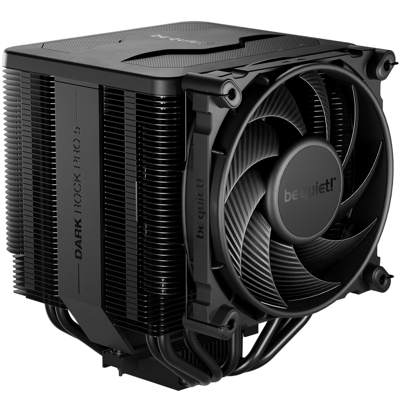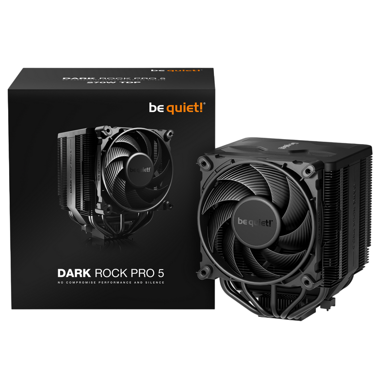 . PN: BK036 Модель Dark Rock Pro 5 TDP (Ватт) 270 Варианты цвета Black Общие размеры без крепления (Д x Ш x В), (мм) 145 x 136 x 168 Общий вес (кг) 1.29 Совместимость с сокетами Intel 1700 / 1200 / 1150 / 1151 / 1155 Совместимость с сокетами AMD AM5 / AM4 Уровень шума (dB(A)) @ 50/75/100% (об/мин) 8.9 / 16.3 / 23.3 Number of fans 2 Разъем подсветки - Размеры (Д x Ш x Г), (мм) 119.5 x 136 x 168 Материал радиатора Aluminum Обработка покрытия Ceramic coating Материал основания Copper Обработка основания CNC machined Кол-во тепловых трубок, диаметр (мм) 7 / 6 Антивибрационное крепление вентилятора - Спецификации вентилятора Модель вентилятора Silent Wings 4 / Silent Wings Размеры вентилятора (мм) 120 x 120 x 25 / 135 x 135 x 25 Скорость вентилятора @ 100% PWM (об/мин) Q: 1500; 1300 / P: 2000; 1700 Поток воздуха при 100% PWM / 12В (CFM / м3/ч) 52.5 / 89.1 | 68.7 / 116.6 Воздушное давление при 100% PWM / 12В (мм H2O) 2.48 / 1.82 Технология подшипника Fluid Dynamic Bearing Технология моторчика 6-pole fan motor Номинальное напряжение постоянного тока (V) 12 Ток при номинальном напряжении ток (A) 0.20 / 0.28 Потребляемая мощность (W) 2.4 / 3.4 Разъем 4-pin PWM Разъем подсветки - Длина кабеля (мм) 80 / 120 Время работы (ч / 25°C) 300 Y-кабель ✓