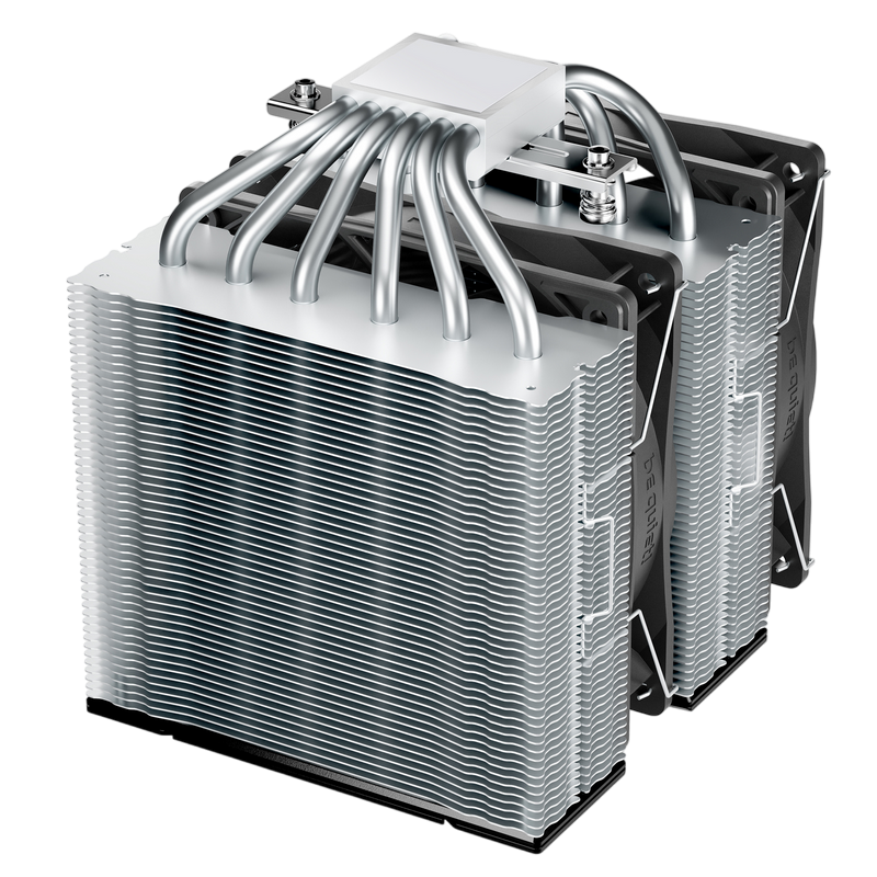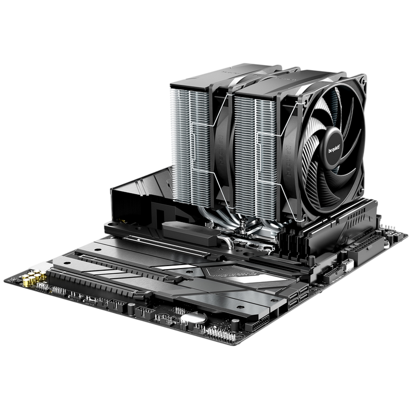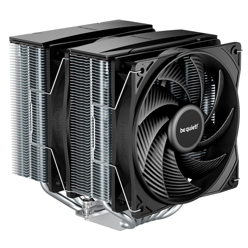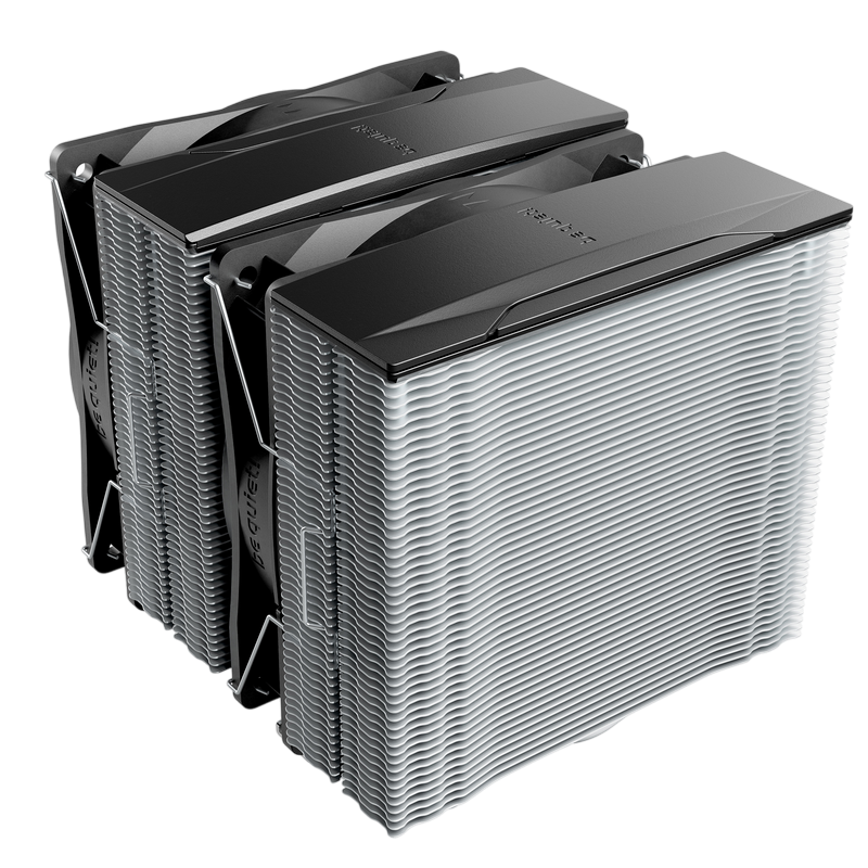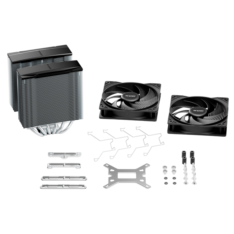 . 1851 / 1700 / 1200 / 1150 / 1151 / 1155 AM5 / AM4 Model Pure Rock Pro 3 TDP (W) 250 Color option Silver Overall dimensions without mounting material (L x W x H), (mm) 139 x 124 x 155 Total weight (kg) 1.07 Socket compatibility Intel 1851 / 1700 / 1200 / 1150 / 1151 / 1155 Socket compatibility AMD AM5 / AM4 Overall noise level (dB(A)) @ 50/75/100% (rpm) 14.0 / 26.5 / 34.8 Number of fans 2 Dimensions (L x W x H), (mm) 114 x 124 x 155 Fin material Aluminum Surface treatment nickel plated Base material copper / nickel plated CPU contact surface CNC machined Heatpipe number / Diameter (mm) 6 / 6 Fan model Pure Wings 3 120mm PWM Fan dimensions (mm) 120 Speed @ 100% PWM (rpm) 2000 Airflow at 100% PWM / 12V (CFM / m3/h) 59.6 / 101.2 Air Pressure at 100% PWM / 12V (mm H2O) 2.41 Bearing technology Rifle Motor technology 4-pole fan motor Rated Voltage (V) 12 Input current (A) 0.10 Safety current (A) 0.30 Input power (W) 3.6 Connector 4-pin PWM Cable length (mm) 120 Lifespan (h / 25°C) 80,000 Y-Cable ✓