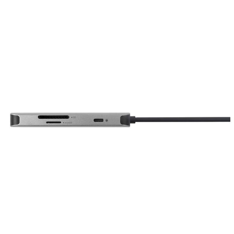 SIMPLE & COMPACT DESIGN Metal case Color: Silver Features Power delivery: up to 100 W Host interface: USB-C 3x USB-A 5 Gb/s 1x HDMI (4K@60Hz) 1x SD 3.0 1x micro SD Supports usb-c power adapter (not included) Dimensions (L*W*H): 101.6*40*12.5 mm WEIGHT: 58 G