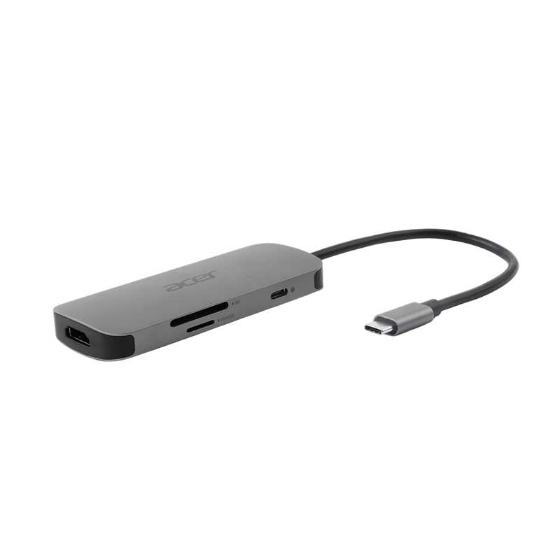 ACER Type-C Dongle 7-in-1 3 x USB-A 5 Gb/s, 1 x HDMI, 1 x SD, 1 x mSD, 1 x USB-C Power delivery: up to 100 W (power adapter not included)