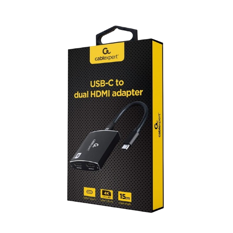 Adapter Type-C to 2*HDMI socket 0.15m Cablexpert, up to 4K at 30 Hz A-CM-HDMIF2-01