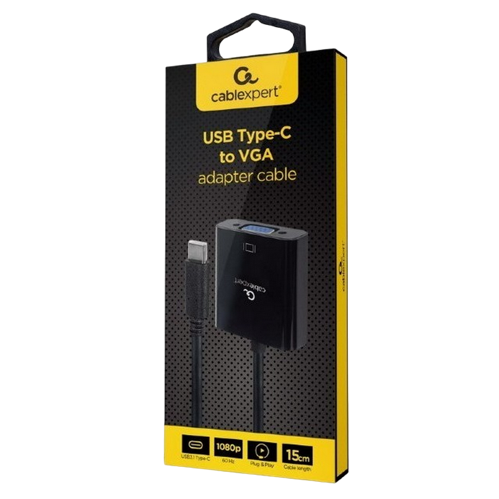 Adapter Type-C to VGA socket 0.15m Cablexpert, 1080p FHD at 60 Hz, A-CM-VGAF-01