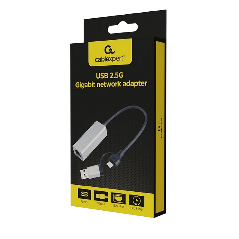 Adapter Type-C/USB3.0 to LAN F, Cablexpert, LAN: 2.5 Gigabit, A-USB3AC-LAN2G-01