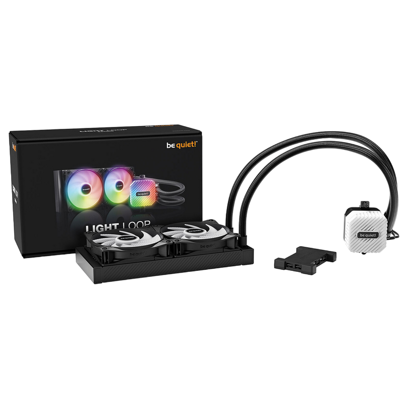 AIO Liquid Cooling be quiet! "Light Loop 240mm" (15.4-34.9dB, 2x120mm ARGB fans, PWM, 2100RPM, ARGB Block, ARGB-PWM-Hub, 1200g.)