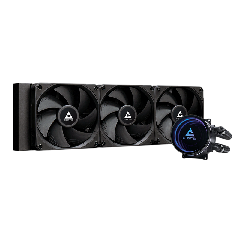. PN: CLC-360-BLK Intel: LGA1851, LGA1700, LGA1200, LGA1150, LGA1151, LGA1155, LGA1156 AMD: AM5, AM4, AM3+, AM3, AM2+, AM2, FM2+, FM2, FM1 Model ICEBERG 360 DARK Article no. CLC-360-BLK EAN Code 0753263078766 Weight (Net/Gross) 1.9 kg / 2.8 kg Socket Compatibility Intel: LGA1851, LGA1700, LGA1200, LGA1150, LGA1151, LGA1155, LGA1156 AMD: AM5, AM4, AM3+, AM3, AM2+, AM2, FM2+, FM2, FM1 Cooling Block Dimensions: 82.9x73.2x50.7mm Material (Block): Copper Material (Housing): Plastic Connector: 3-Pin A-RGB Pump Motor Speed: 1800 - 2700RPM Rated Voltage: 12.0V Rated Current: 0.2A Power Input: 4.2W Connector: 4-Pin PWM Radiator Dimensions: 392x120x27mm Material: Aluminum Tube Length Length: 400mm Fans Quantity: 3pcs Dimension: 120 x 120 x 25mm Speed: 500PRM – 2200RPM±10% Airflow: 64.72CFM Air Pressure: 3.06mmH2O Noise: 34.7dBA Bearing: Fluid Dynamic Bearing Rated Voltage: 10.2V-13.8V Rated Current: 0.21A Power Input: 2.14W-2.90W Fan Connector: 4-Pin PWM