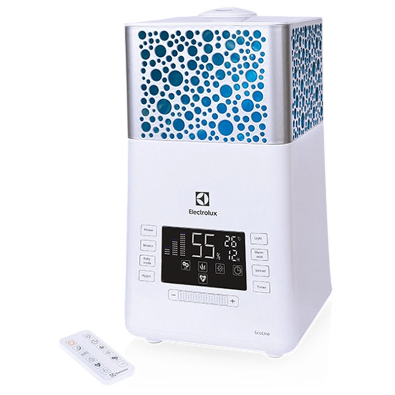 , 45m2, water tank 5l, operating modes 11 h (450ml/h),humidity, REMOTE CONTROL, cleaning, disinfection, aroma, ionizer, thermometer, electronic display, warm steam, baby mode, timer, white