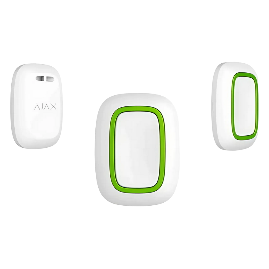 // https://ajax.systems/products/button/ Compatibility: Operates with all Ajax hubs, and range extenders False alarm prevention: Yes (in the Panic mode) Number of buttons: 1 Alarm transmission: Not longer than 0,15 sec Active from the first click (no need to wake it up) Adjustable alarm types: Intrusion; Fire; Medical help; Panic button; Gas leak Power supply: Battery: CR2032 battery, 3 V Battery life: Up to 5 years Operating temperature range: From -10°C to +40°C Permissible humidity: Up to 75% Protection class: IP55