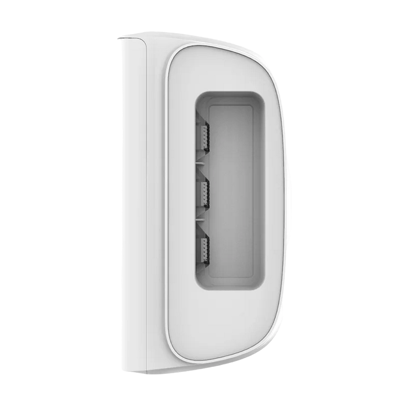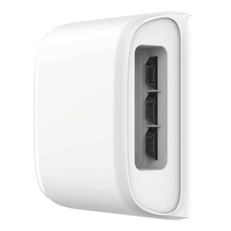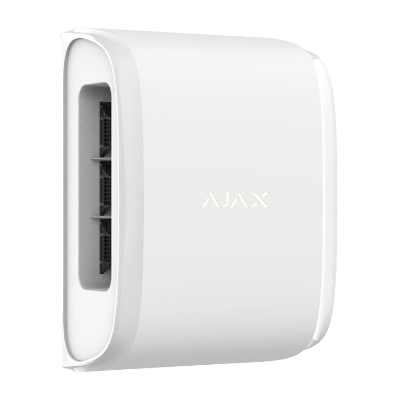 // https://ajax.systems/products/dualcurtain-outdoor/ Installation method: Indoors / outdoors Compatibility: Hub Plus, Hub 2, Hub 2 Plus, ReX with OS Malevich 2.11 and higher Sensing element: 4 × PIR sensor Motion detection distance: From 4 to 15 m (depending on settings) for each optical system Protection against false alarms: Available Alarm signal delivery time: 0.15 s Detection angle: Horizontal — 4.5° Vertical — depending on settings: Time for motion detection From 0.3 to 2 m/s Sensitivity: Adjustable, 3 levels Power supply: 2 × CR123А batteries, 3 V Battery life: Up to 4 years Temperature sensor: Available Operating temperature range: From −25°С to +60°С Permissible humidity: Up to 95% Protection class: IP54
