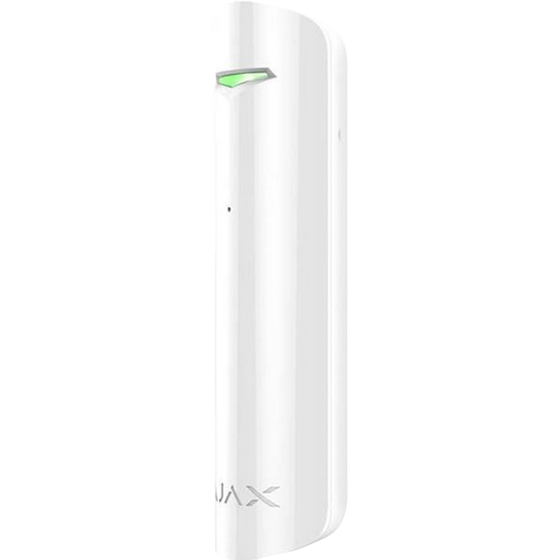 // https://ajax.systems/products/glassprotect/ Installation method: Indoors Compatibility: Operates with all Ajax hubs, range extenders, ocBridge Plus, uartBridge Sensing element: Electret microphone Break detection distance: Up to 9 m Alarm signal delivery time: 0.15 s Sensitivity: Adjustable, 3 levels Detection angle: 180° Power supply: Battery: CR123A battery, 3 V Battery life: Up to 7 years Temperature sensor: Available Operating temperature range: From -10°С to +40°С Permissible humidity: Up to 75%