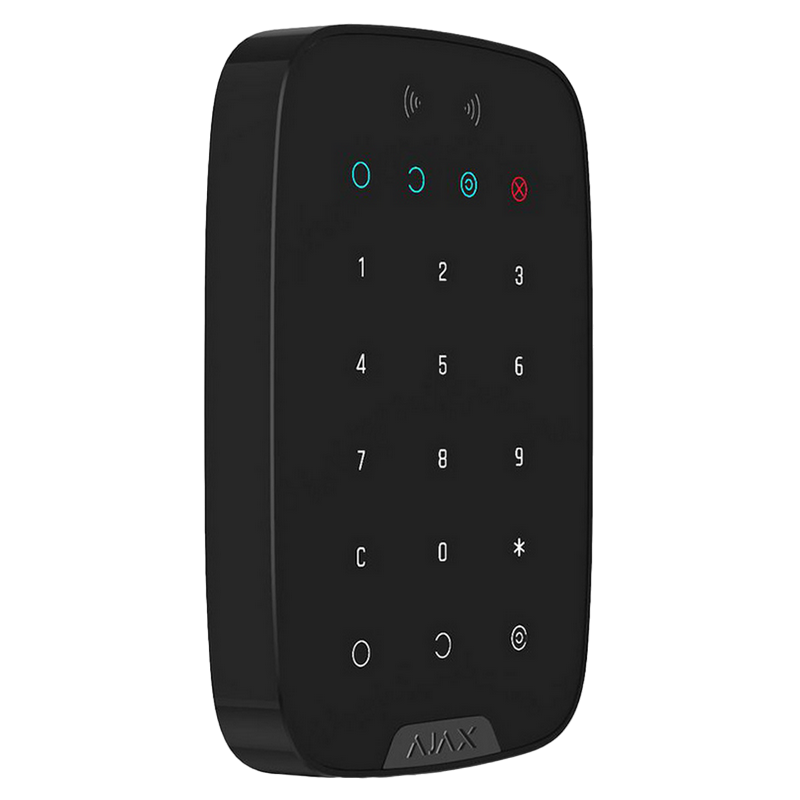 // https://ajax.systems/products/keypad-plus/ Installation: Indoor only Compatibility: Hub Plus, Hub 2, Hub 2 Plus, Hub Hybrid, ReX with OS Malevich 2.11 and higher Personal passcodes: Yes Passcode guessing protection: Yes Duress code: Yes Contactless access: DESFire® EV1, EV2; ISO14443-А (13,56MHz) Power supply: Batteries: 4 lithium AA (FR6); Voltage 1.5V Battery life: up to 4.5 years Temperature sensor: Available Operating temperature range: From –10°C to +40°C Operating humidity: Up to 75%