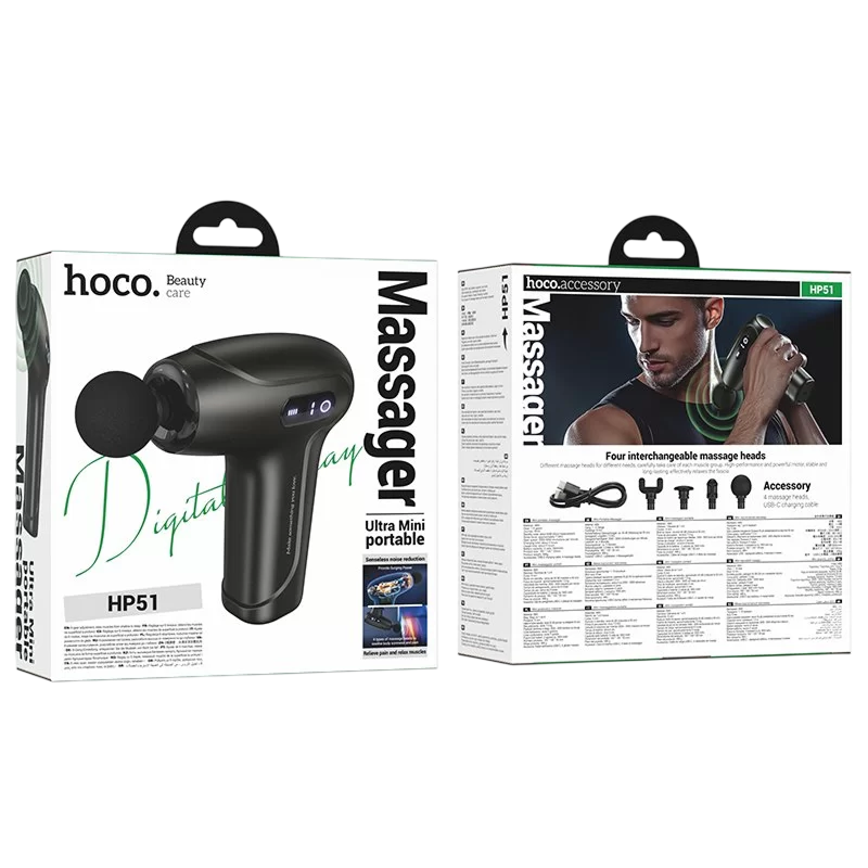 Aparat de masaj Hoco HP51 Electric mini silent fascia gun, Metal Gray