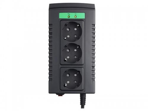 Защита: Защита от всплесков напряжения, вызванных ударами молнии или иными причинамиДля предотвращения повреждения оборудования от воздействия импульсных перенапряжений.Автоматическая регулировка напряжения (встроенный автоматический стабилизатор напряжения / AVR)Автоматическое ступенчатое повышение или понижение напряжения до значения, приемлемого для нормальной работы оборудования.Многоразовый автоматический предохранительПростая процедура восстановления после перегрузки; замена предохранителя не требуется.