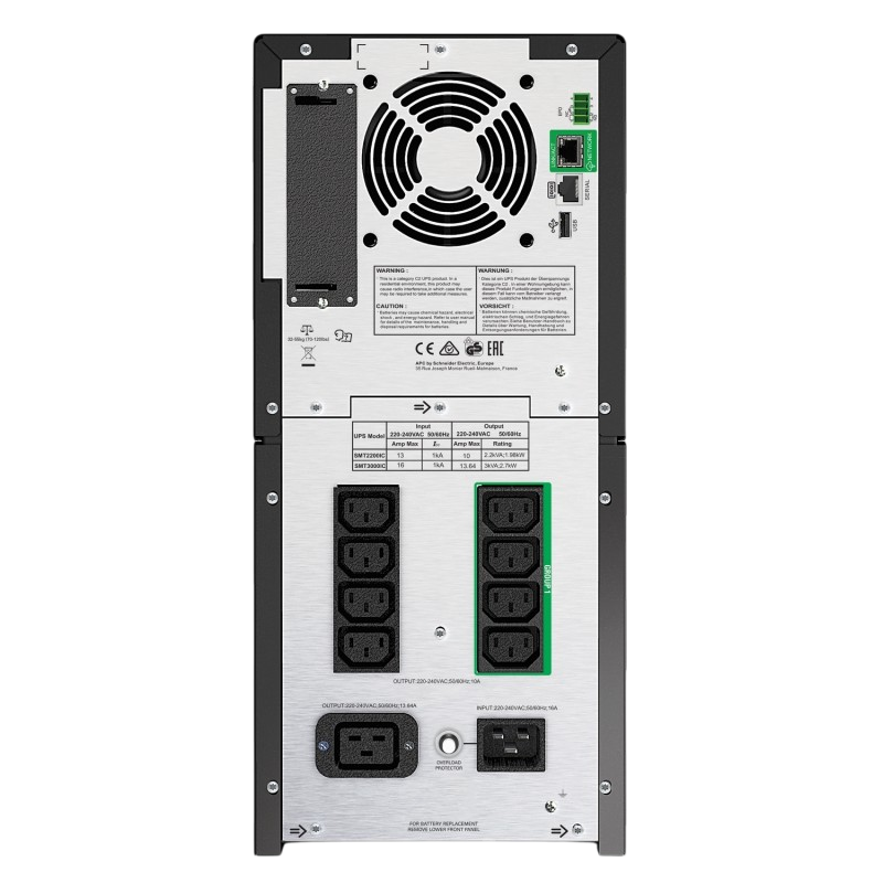 APC Smart-UPS SMT3000IC,3000VA/2700W,Tower,Sinewave, Lineinter,LCD,AVR,USB,RS232,Smartslot,8*C13+1*C19+2 IEC Jumpers