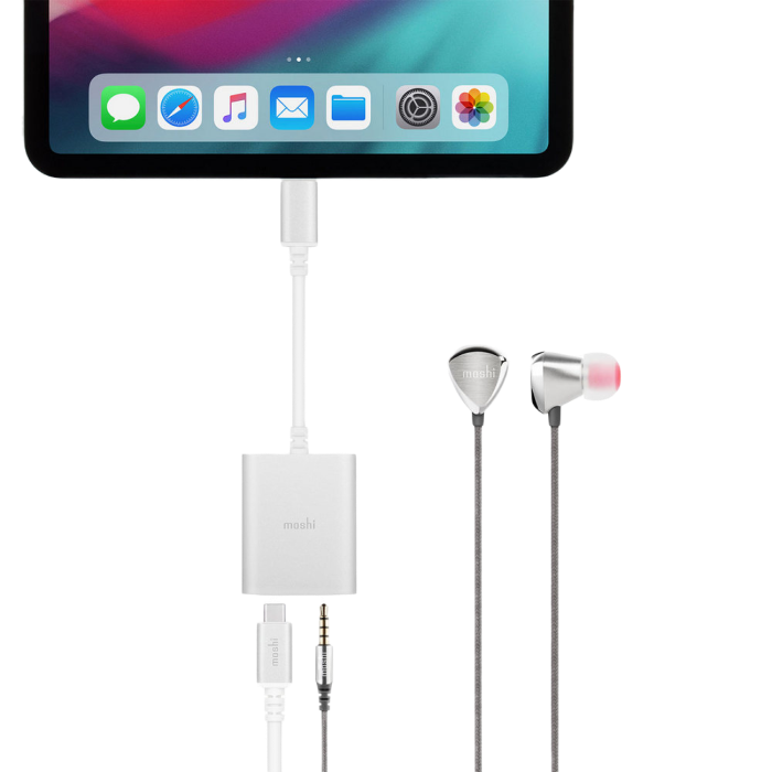 USB-C Digital Audio Adapter with Charging Silver × with digital to analog converter Newly updated for maximum compatibility across all USB-C devices, including the iPad Pro (USB-C). Listen to pristine, high-resolution audio using regular 3.5 mm headphones. A USB-C pass-through port lets you charge your device at the same time. Features Listen music on your USB-C device using regular 3.5 mm headphones. USB-C fast-charging port (Supports PD 3.0). High-resolution audio (24-bit/96 kHz) with Class G amplifier. Anodized aluminum housings with reinforced stress relief points. Compatibility USB-C phones and tablets