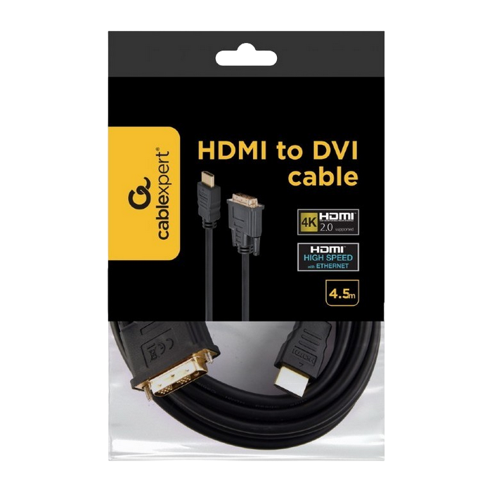 Cable HDMI to DVI 4.5m Cablexpert, male-male, GOLD, 18+1pin single-link, CC-HDMI-DVI-15